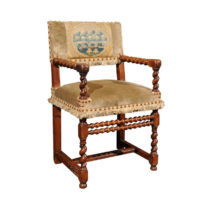French Baroque Style Upholstered Walnut Stool with Carved Barley Twist Legs and H-Stretcher Circa 1900