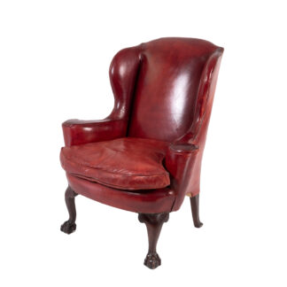 Ox Blood Red Leather Wing Chair with Loose Seat, English Circa 1900.