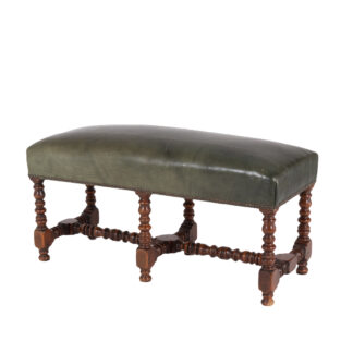 French Oak Upholstered Stool With Turned Stretchers, Circa 1860.