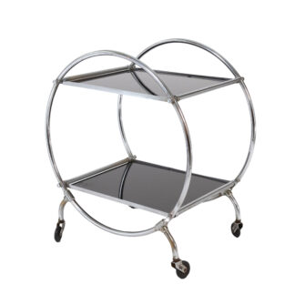 Early 20th Century Tubular Chrome and Ebony Glass Bar Cart, circa 1930.
