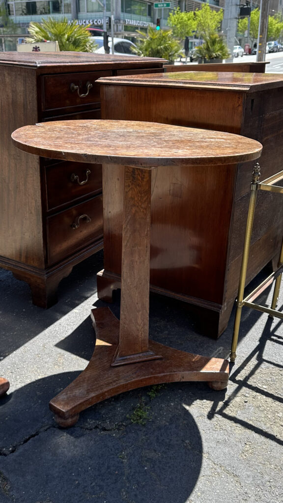 Absolutely. A bench with an extraordinary patina sold before I could really appreciate it. Another piece—a cabinet I bought in a rush—turned out to be meticulously veneered in bookmatched burl. It’s nice when a piece exceeds your expectations in person.