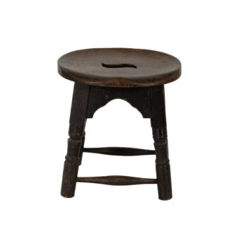 Rustic English Cricket Table With Green Paint Remnants on Splayed Legs circa 1850