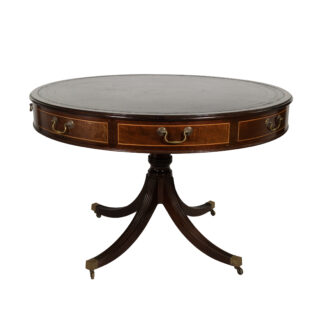 English Mahogany Drum Table with Embossed Leather Top Circa 1900