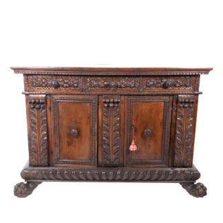 French Baroque Period Carved Walnut Buffet, Circa 1680.