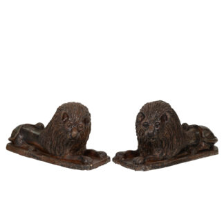 Pair of Large Salt Glazed Stoneware Recumbent Lions, Portuguese Circa 1830