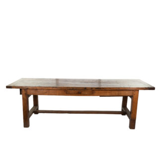 Large English Fruitwood Farm Table With Single Side Drawer, Circa 1860