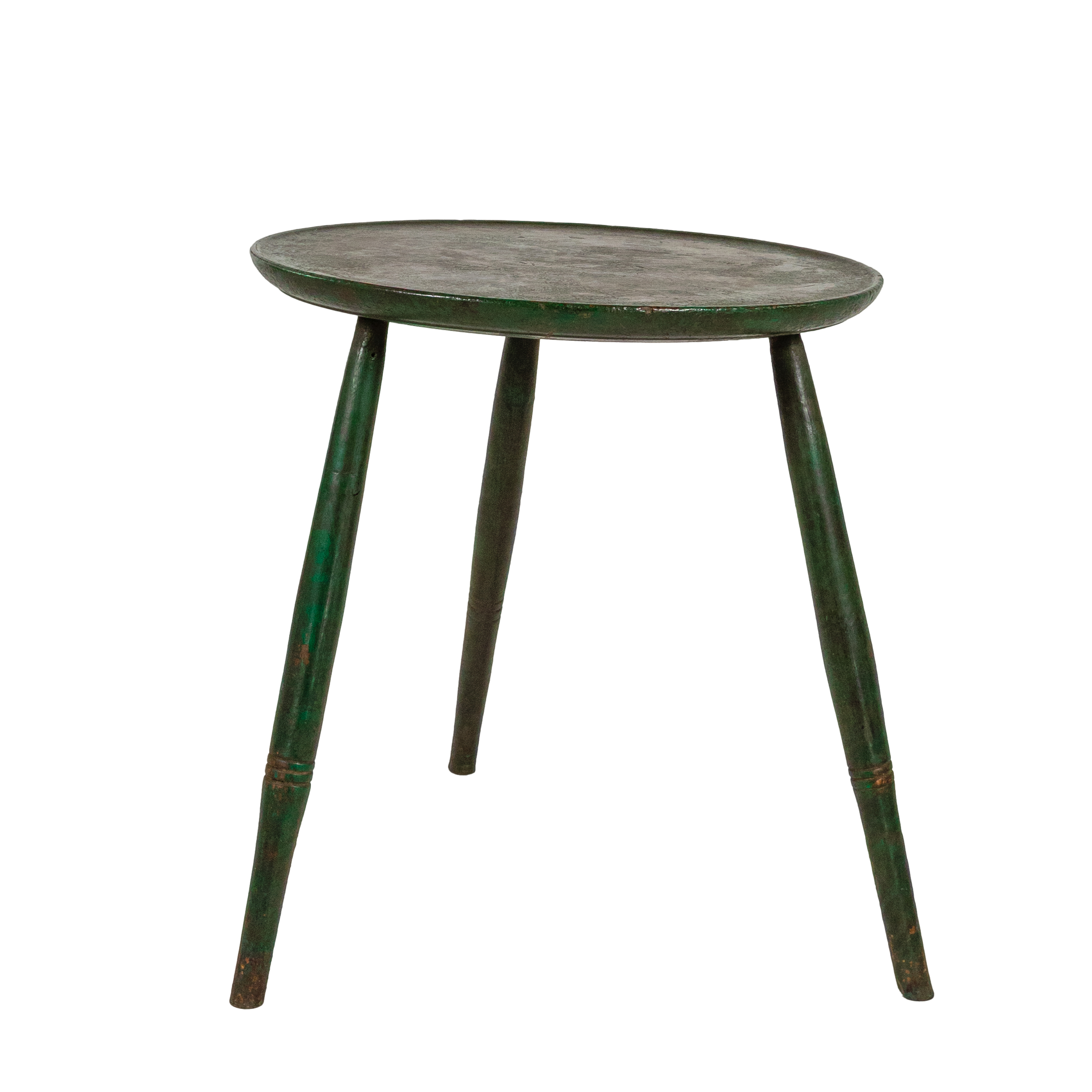 Rustic English Cricket Table With Green Paint Remnants on Splayed Legs circa 1850