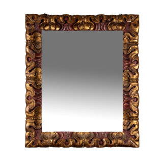 Deeply Carved Giltwood and Red Painted Mirror Frame with Original Mercury Plate, Spain Circa 1900