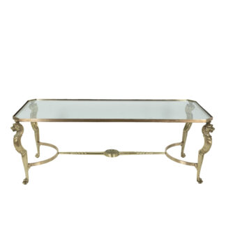 French Cast Bronze Coffee Table with Lion Head Motif, Circa 1950