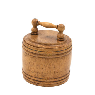 Round Carved Birch Treenware Tobacco Jar With Handle Top; English, Circa 1820.