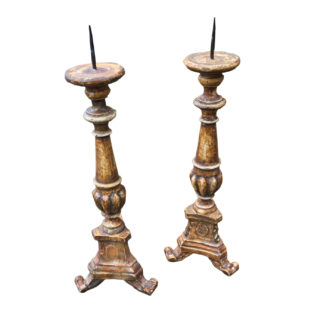 Pair of Small Scale Carved Gilded Pricket Sticks, French Circa 1870