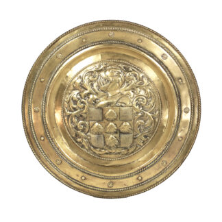 Large Embossed Brass Charger with Coat of Arms, English, Circa 1860