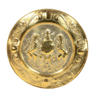 Large Embossed Brass Charger with Coat of Arms English, Circa 1880