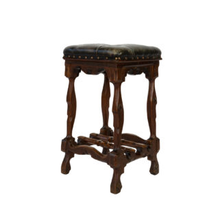 Arts And Crafts Period Square Stool Upholstered In Tufted Dark Leather, English, Circa 1880.