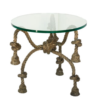 Napoleon III Solid Brass “Knotted Rope” Occasional Table with Glass Top, French Circa 1885