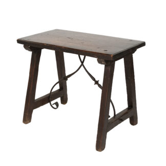 Small Scale Spanish Walnut Trestle Table with Iron Stretcher Circa 1850