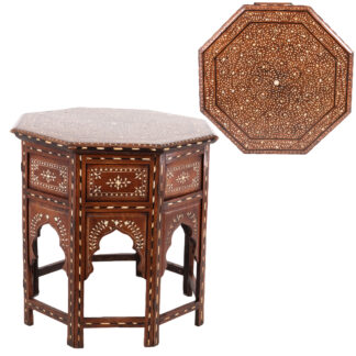 Anglo-Indian Bone and Ebony Inlaid Octagonal Traveling Table, India, Circa 1880.