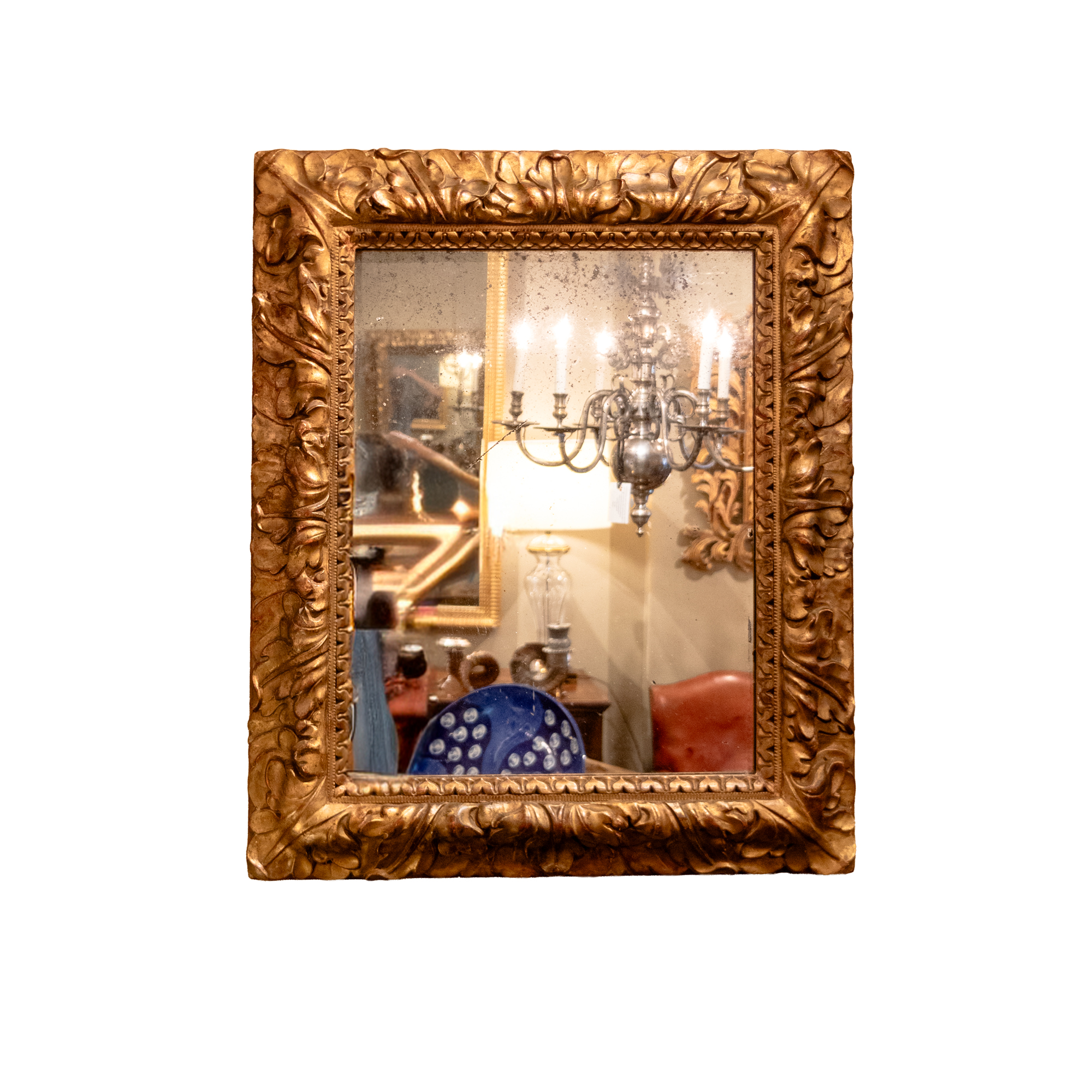 Baroque Style Carved Giltwood Mirror Frame With Foliate Motifs And Original Mercury Plate
