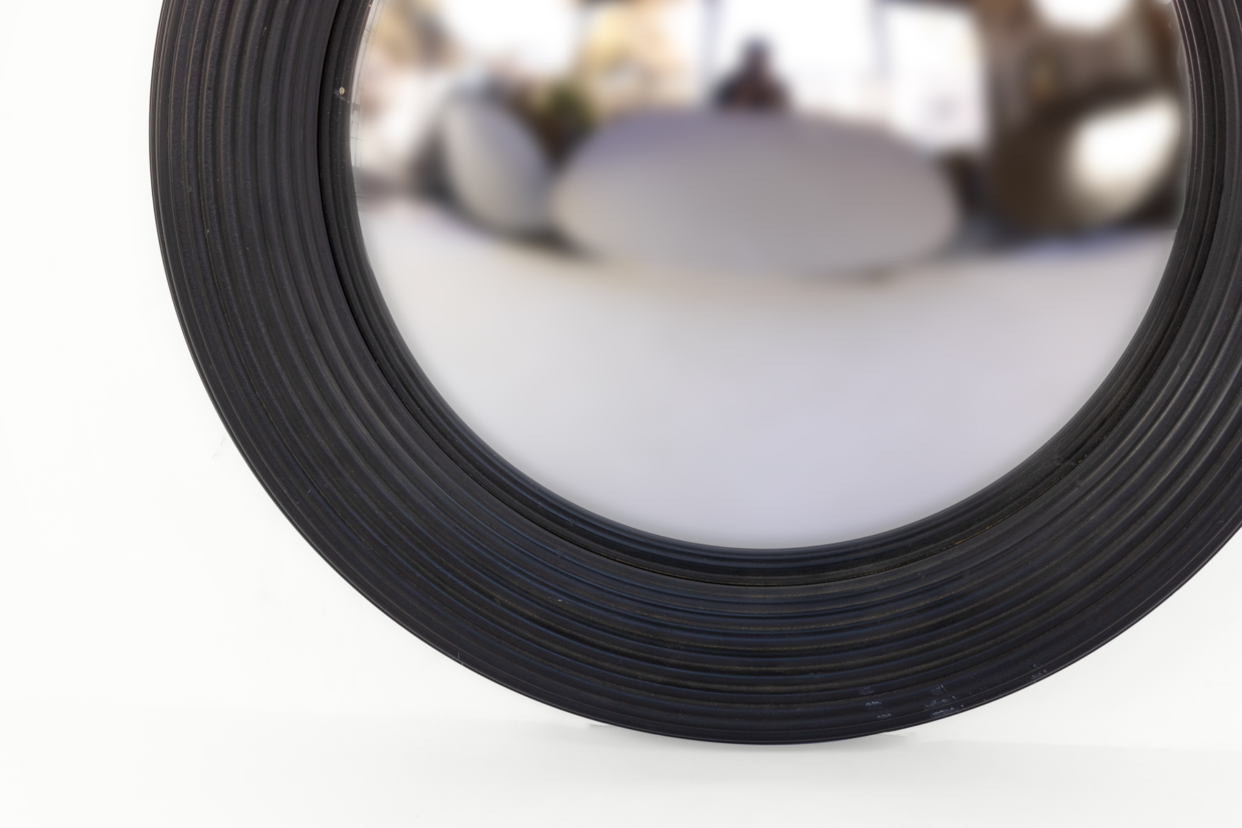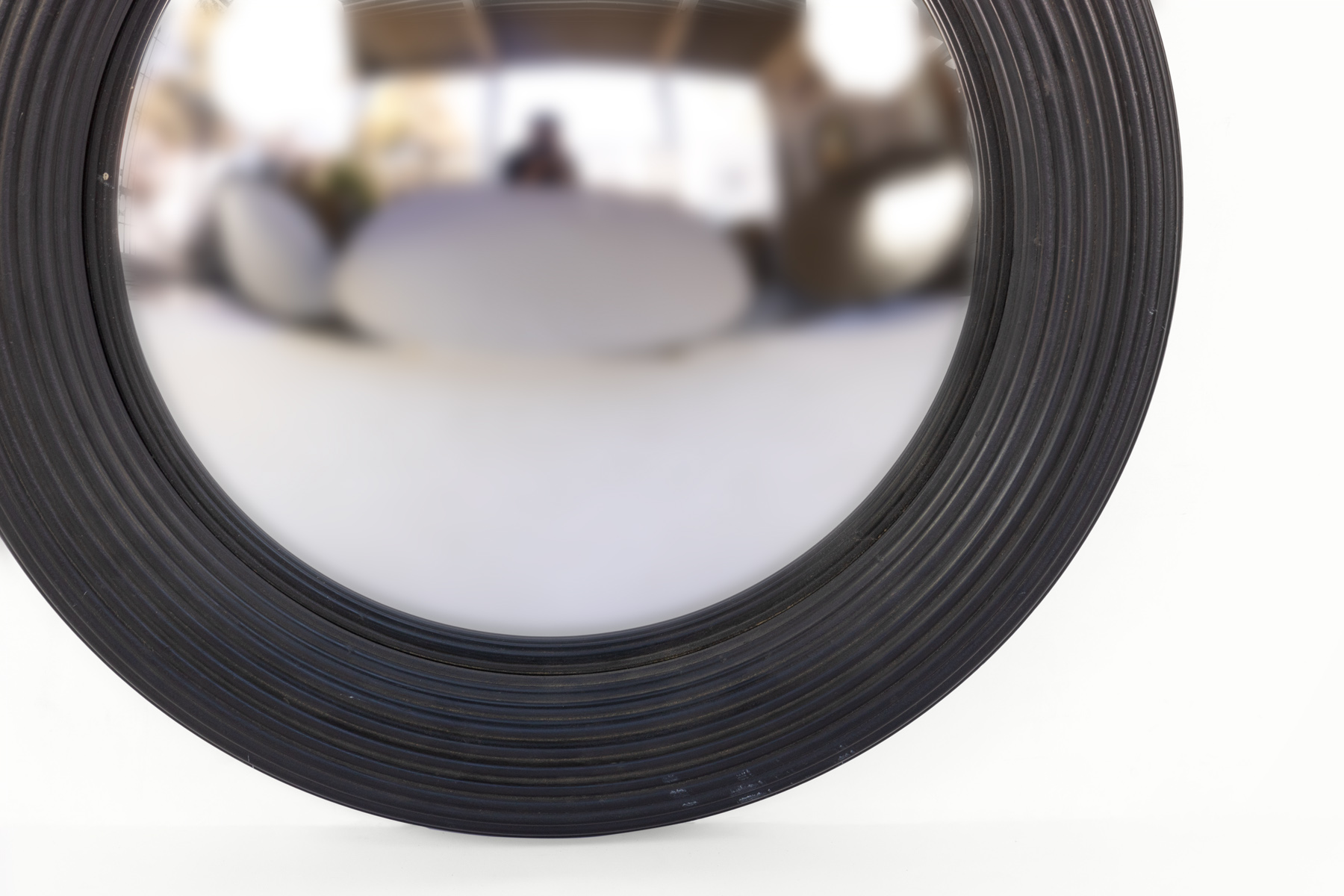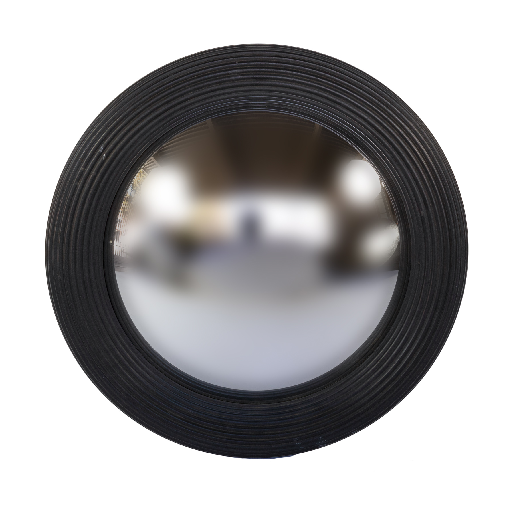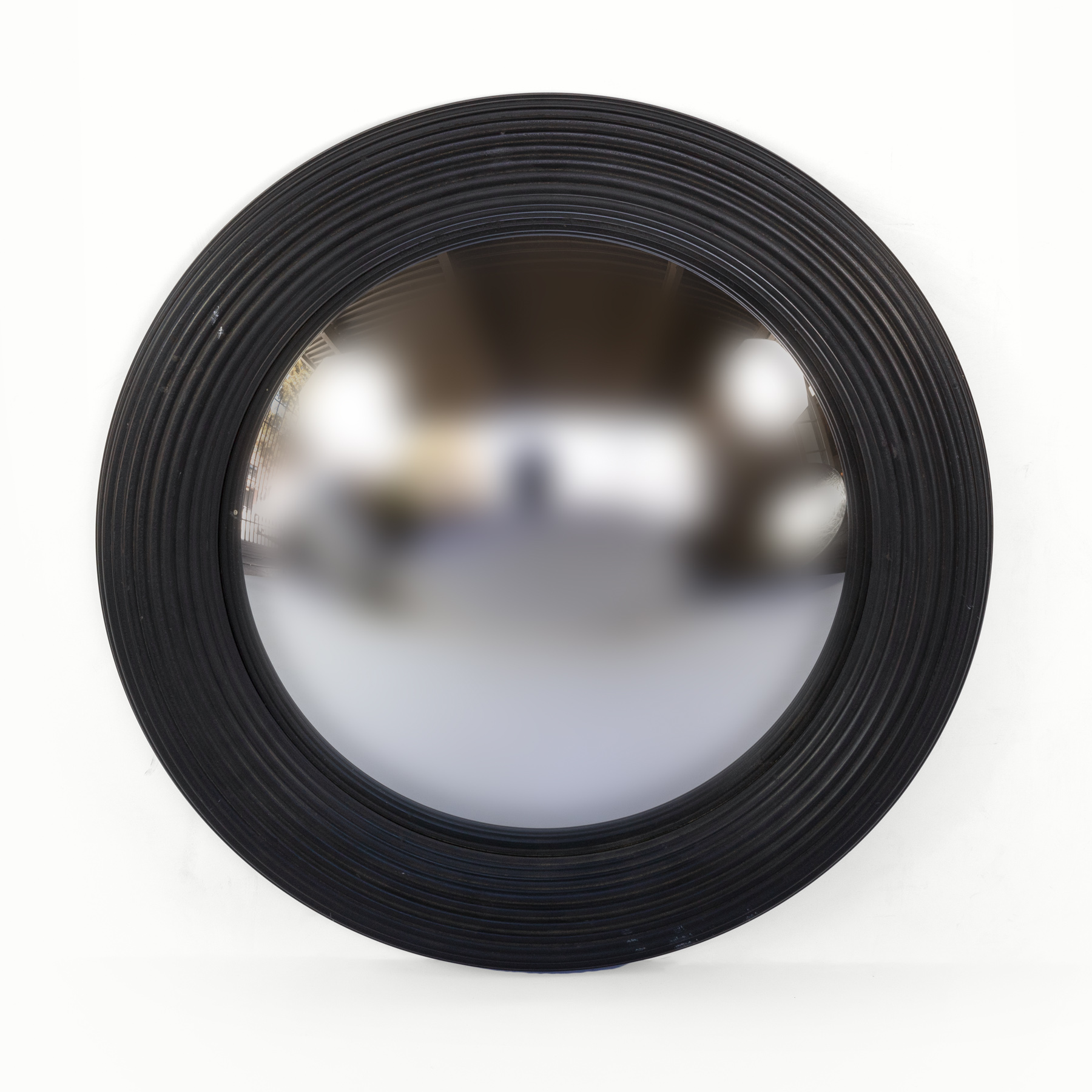 Black painted round fluted mirror frame with convex mirror 1 2, English, 20th century.
