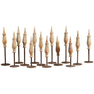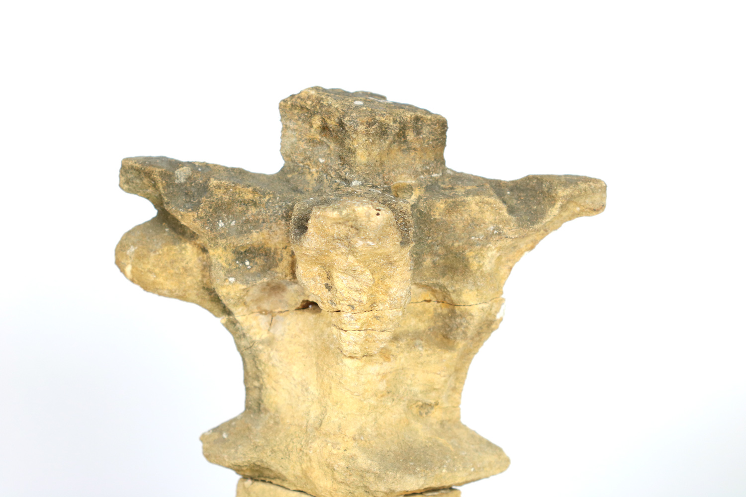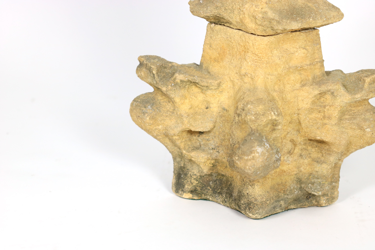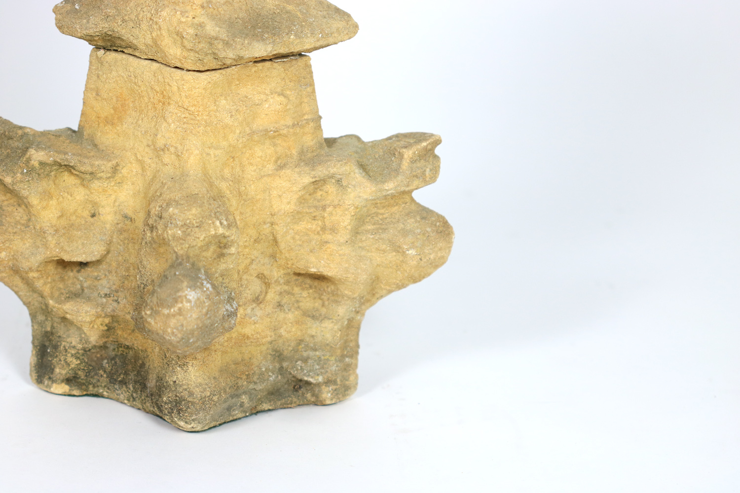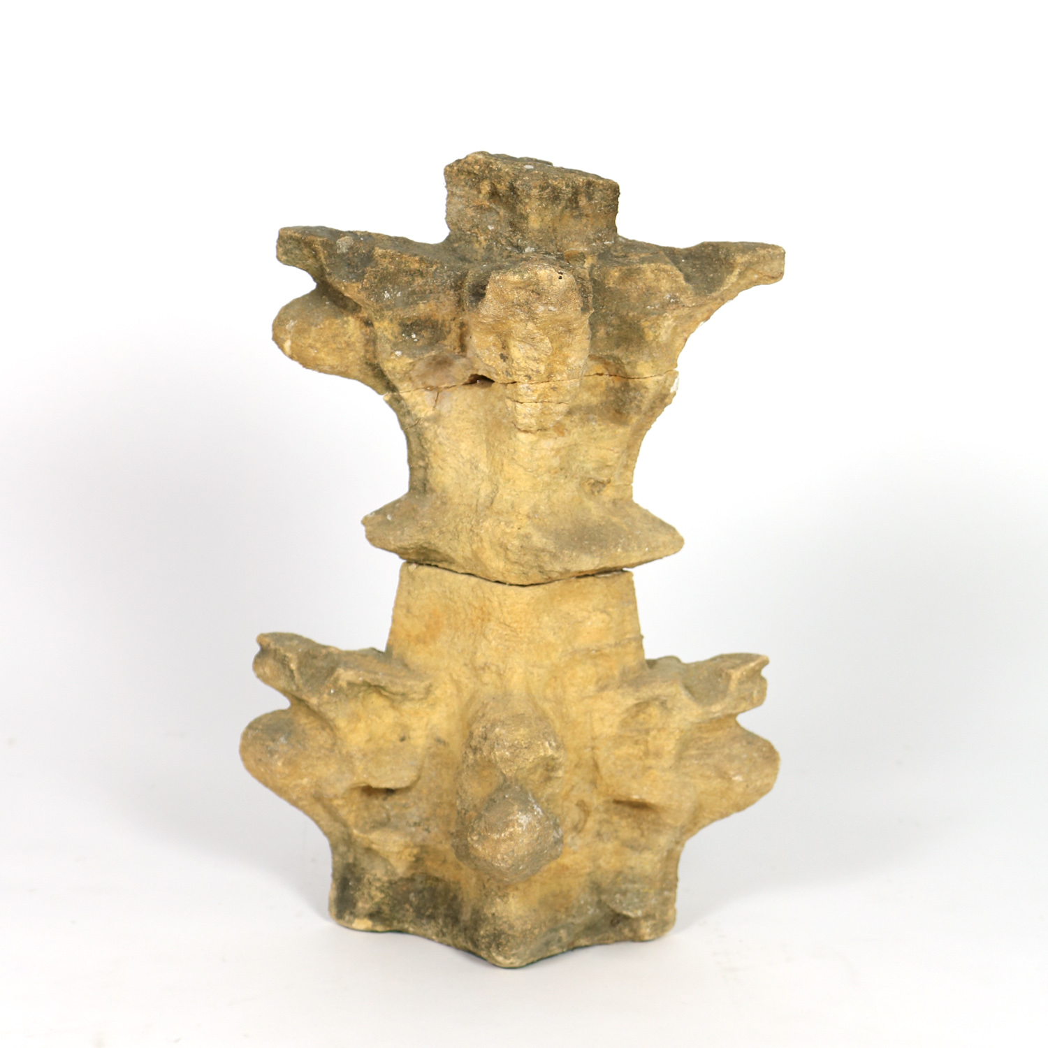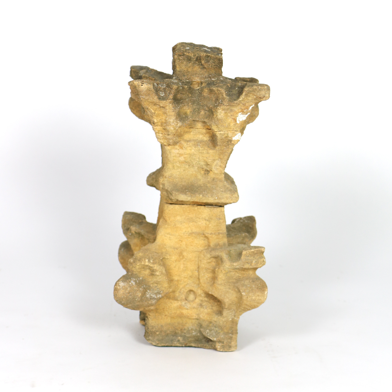A weathered carved limestone architectural element, originally a spire from a church in Winchcombe, Gloucestershire, UK circa 1700. height: 22 in. 56 cm., width: 11 in. 28 cm. depth: 11 in. 28 cm.