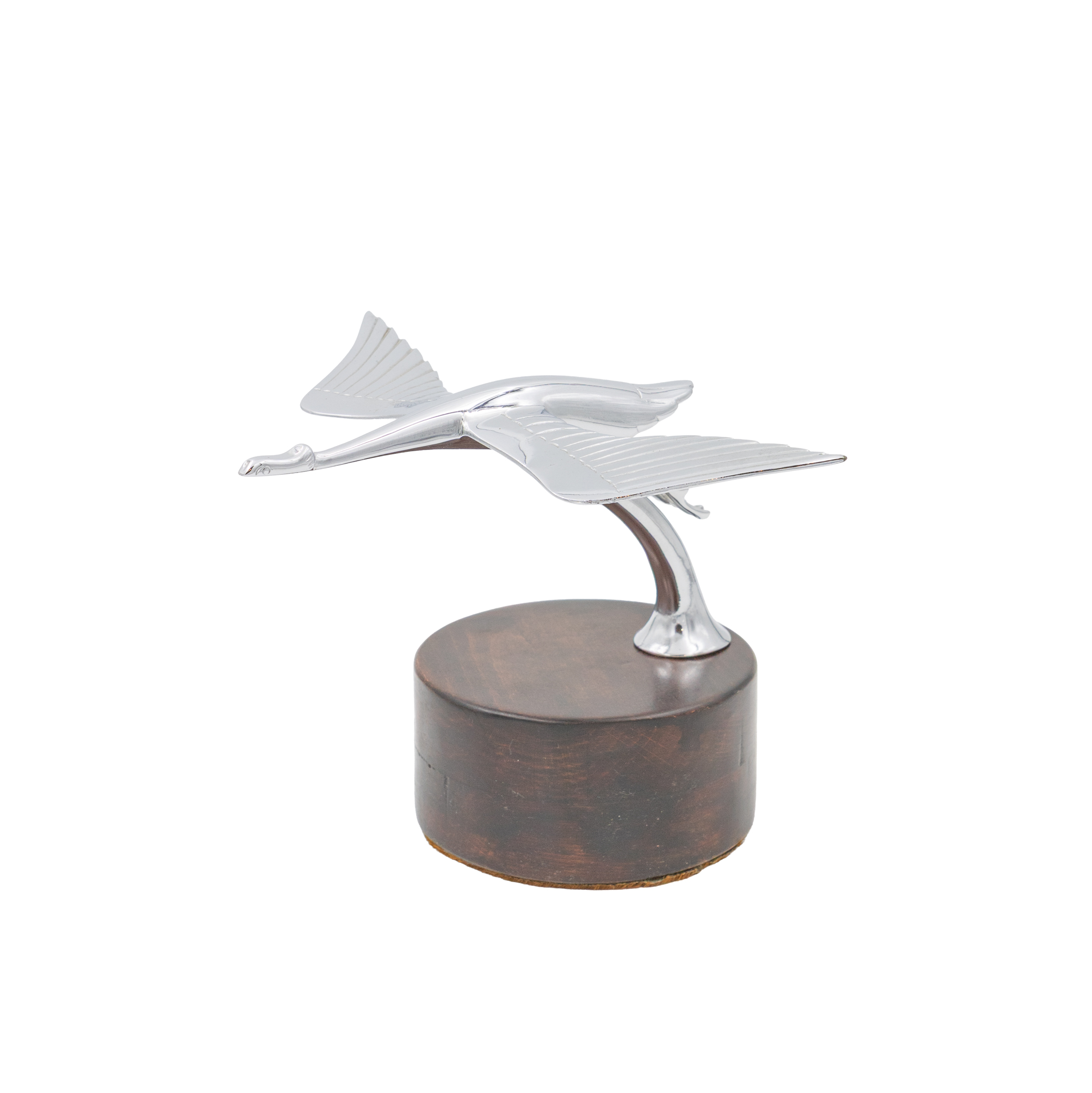 Chrome plated bronze car mascot of a stork, designed for Hispano Suiza cars. Circa 1940.