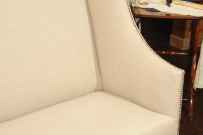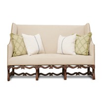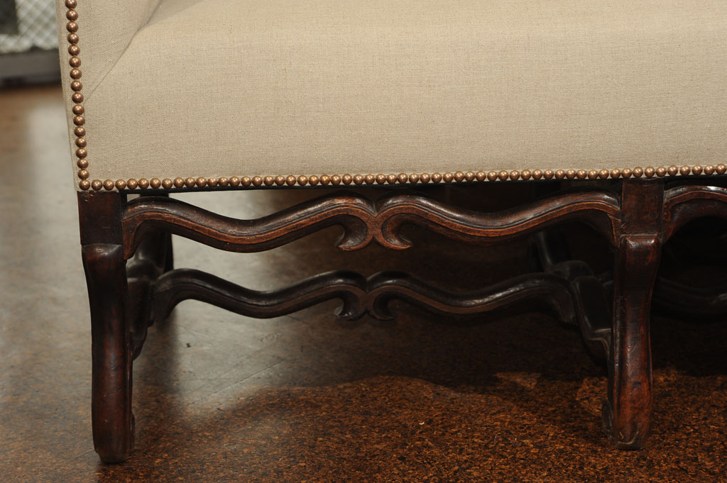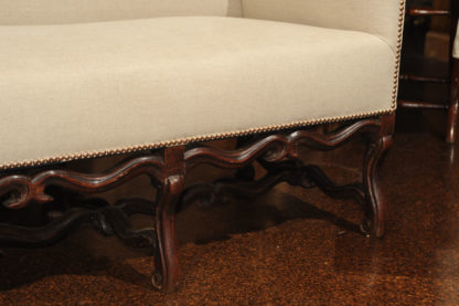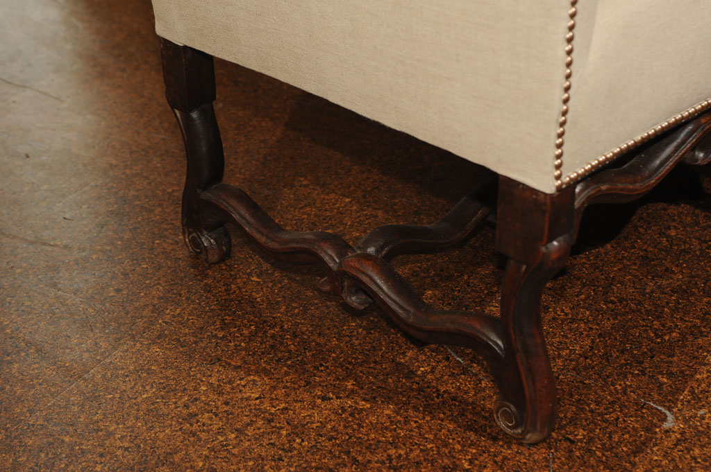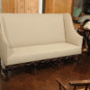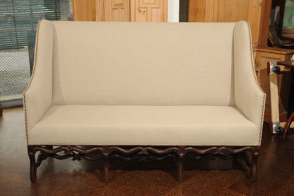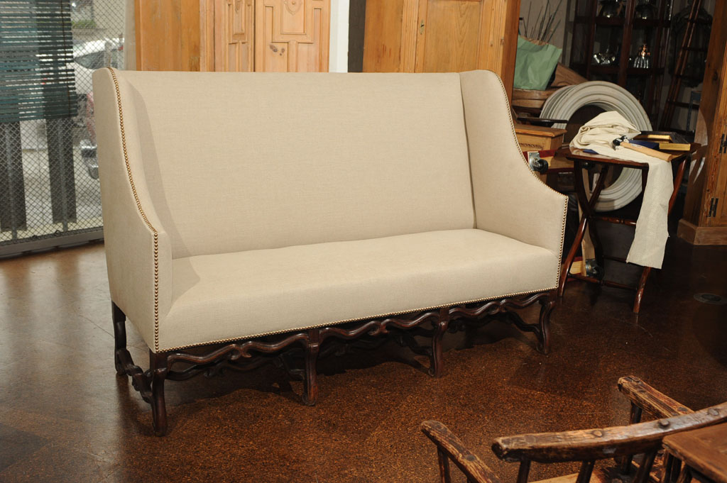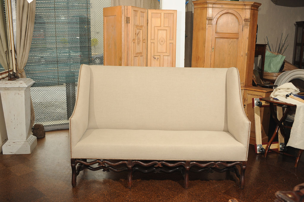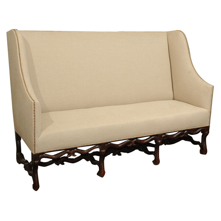 17th century High-back Sofa with carved os mouton base; French circa 1680; re-upolstered in antique linen