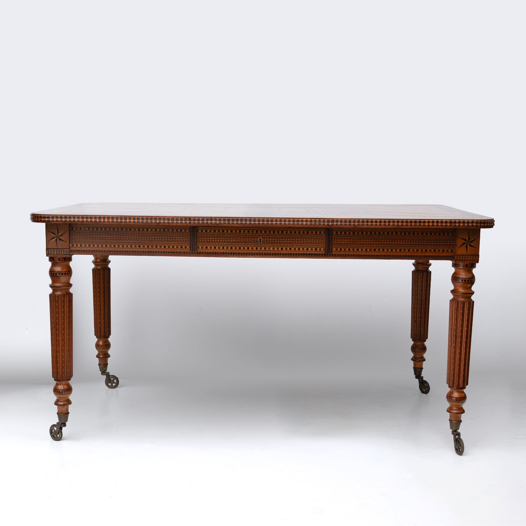 Elaborately inlaid tables like these were popular in the final quarter of the 19th century often produced in Paris or the Franco-Belgian workshops associated with the period’s international exhibitions, where marquetry skill was prominently displayed.