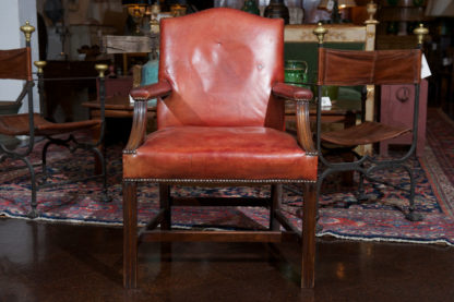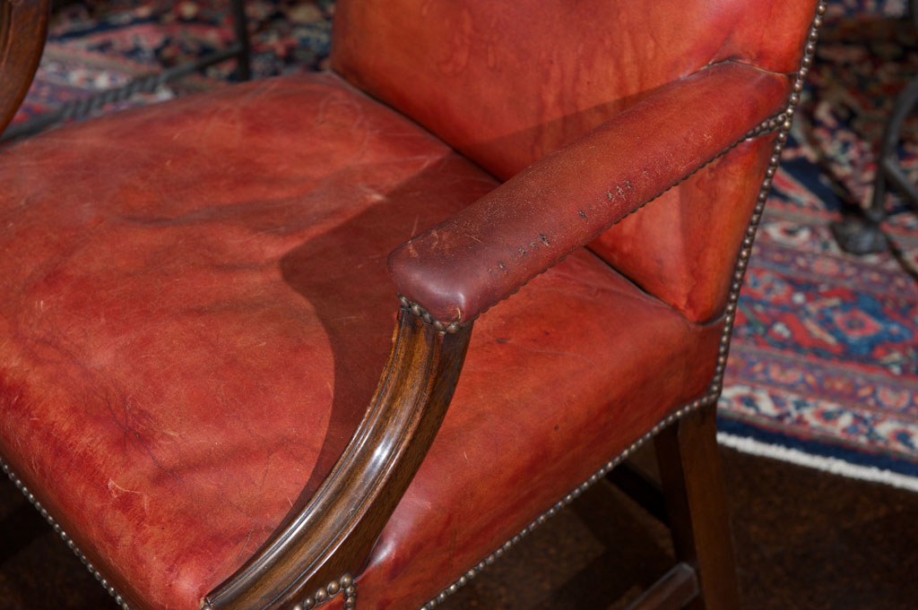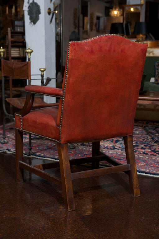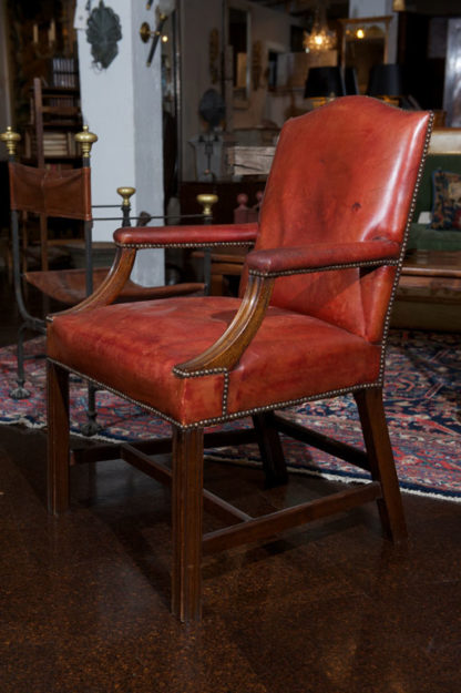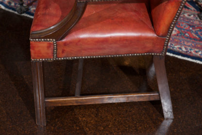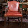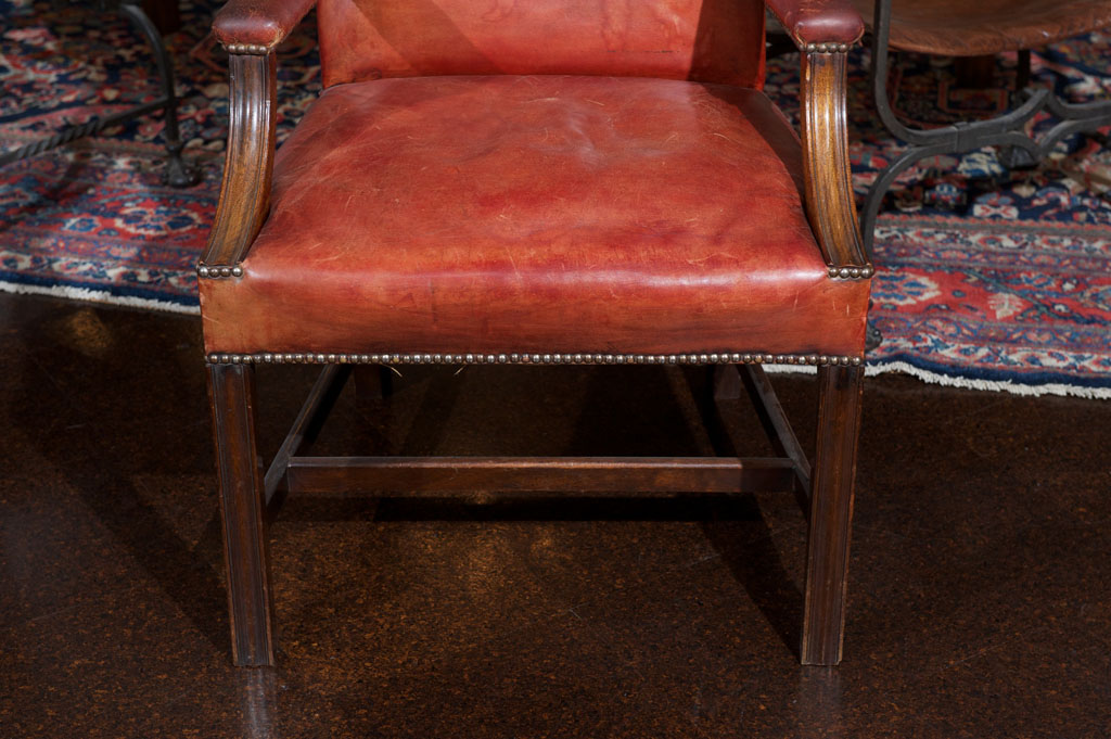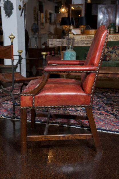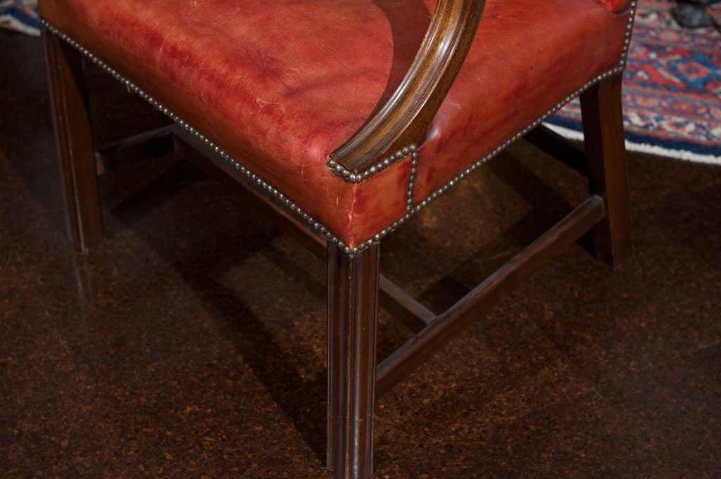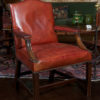 Georgian Style Mahogany Armchair upholstered in red leather with nailhead trim