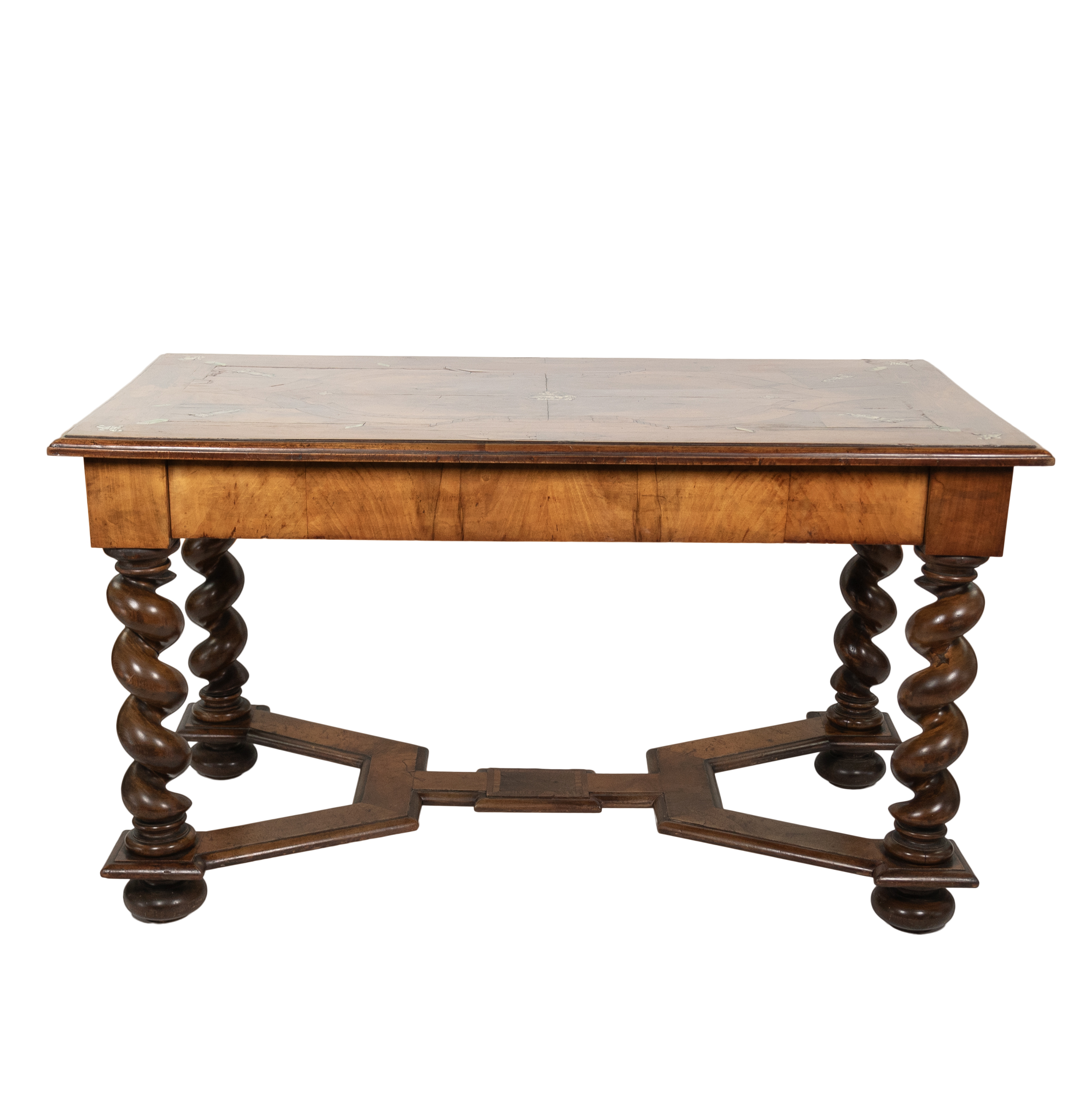 ], massive barley twist legs joined by radiating stretchers on later bun feet; a lovely piece that straddles the end of the Baroque period and the dawn of the Neoclassical period with elements of both. Netherlands circa 1790.