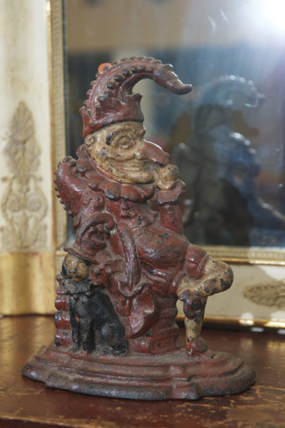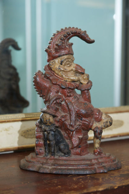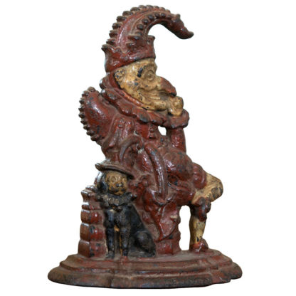 Painted Cast Iron Door Stop depicting Punch and his dog, Toby, English circa 1880