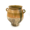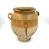 The top half of the pot was typically colored a mustard yellow. Some were green and some were colorless, but confit pots are predominantly yellow. The bottom of the pots are unglazed because the preservation process called for the pot to be covered in cloth and buried in the ground up to the glaze line.