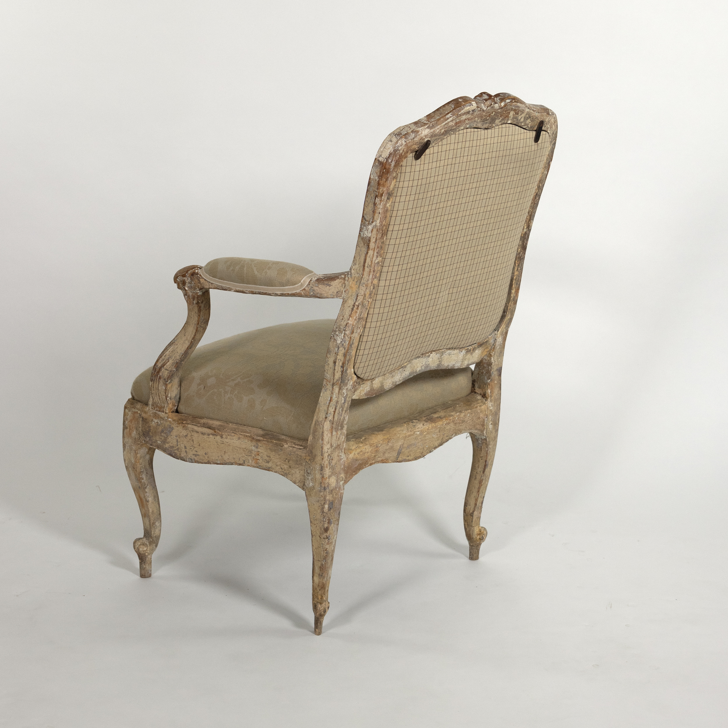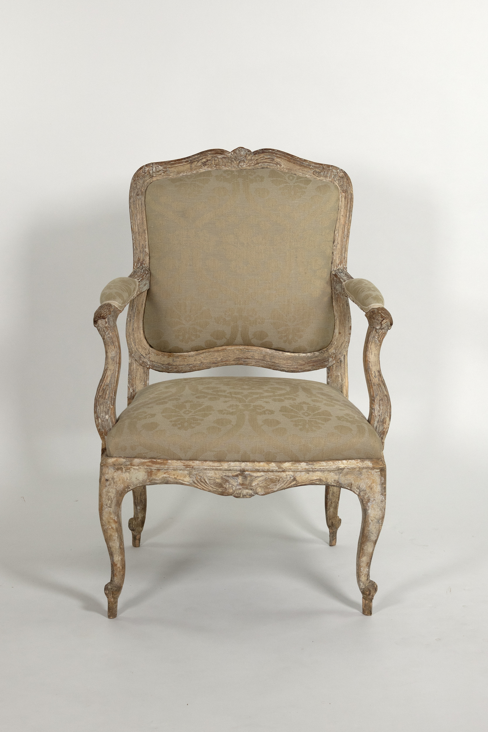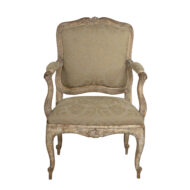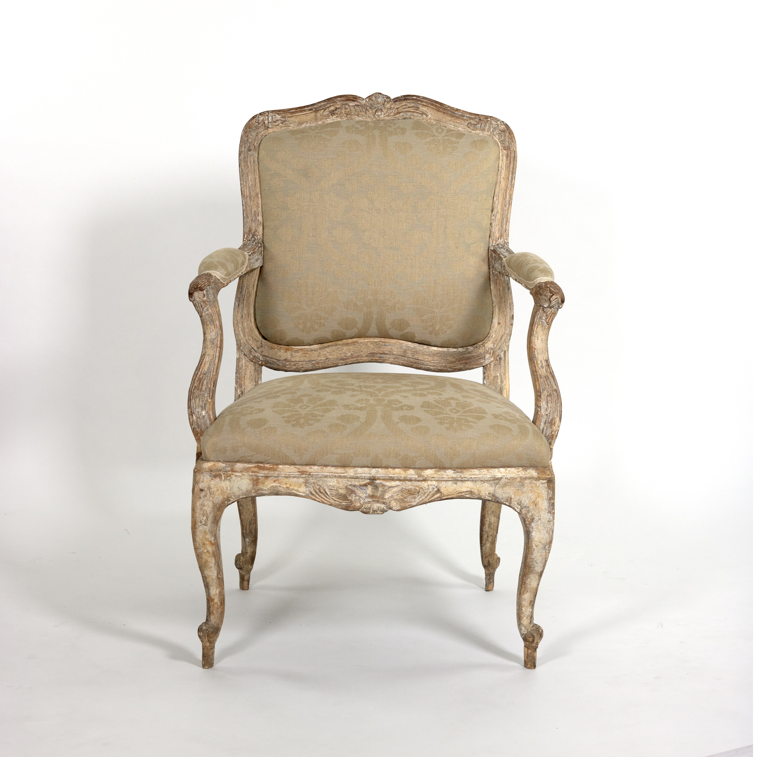 An elegant and well-proportioned painted Swedish open armchair from the late Gustavian period with later upholstery complementing its historical aesthetic. The Gustavian style, characterized by its neoclassical influences and refined simplicity, is evident in the chair’s clean lines and restrained decorative elements.
