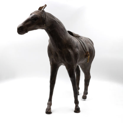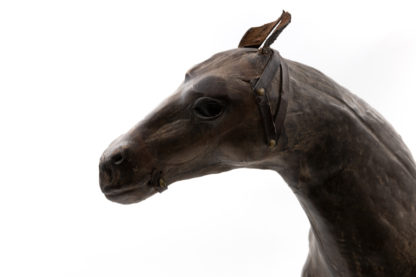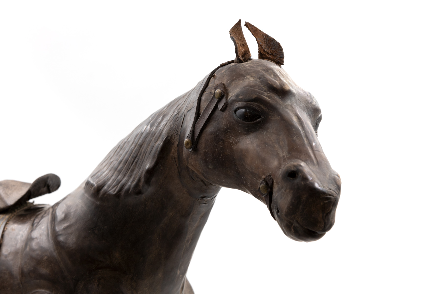 A 19th century leather clad horse sculpture with glass eyes, English, circa 1870.