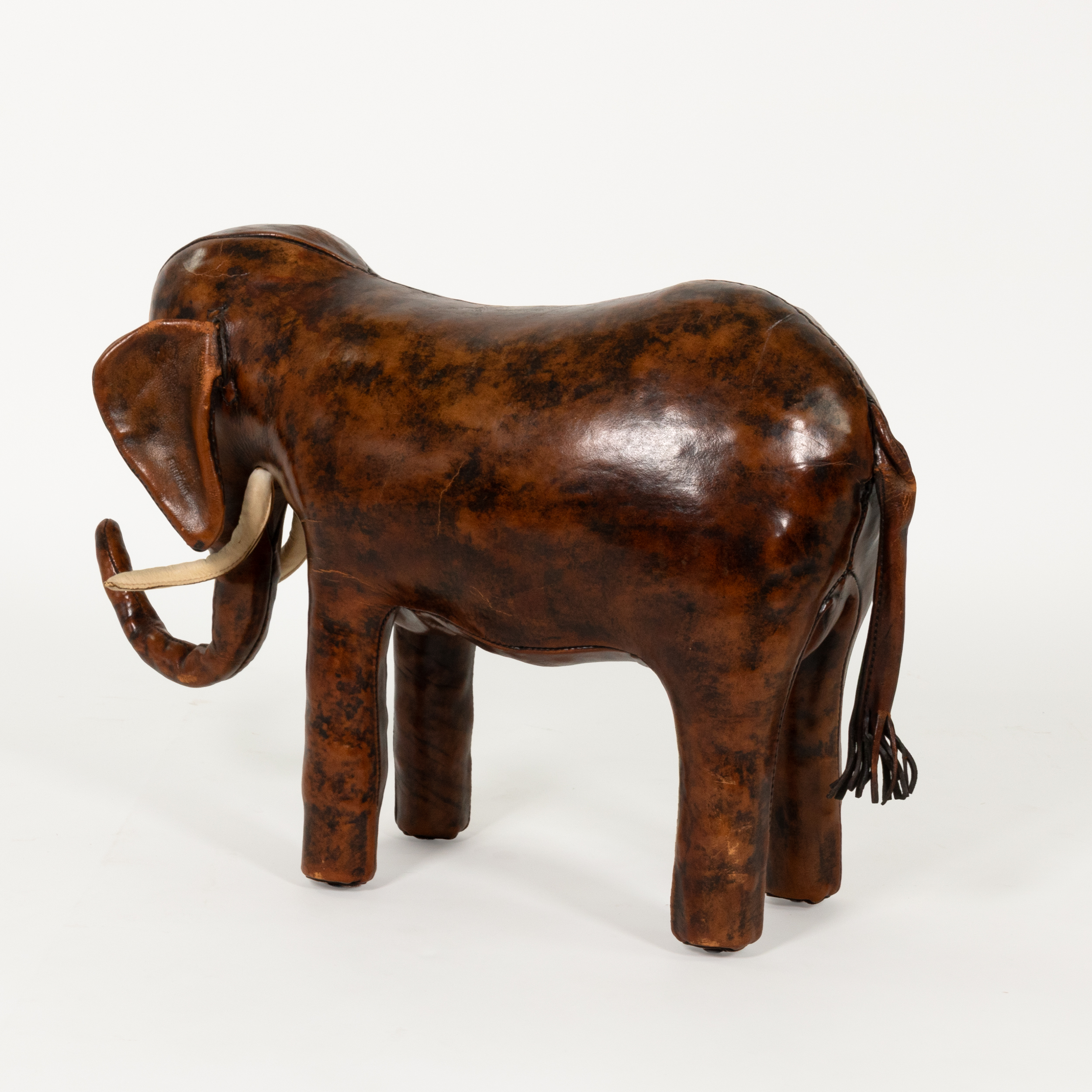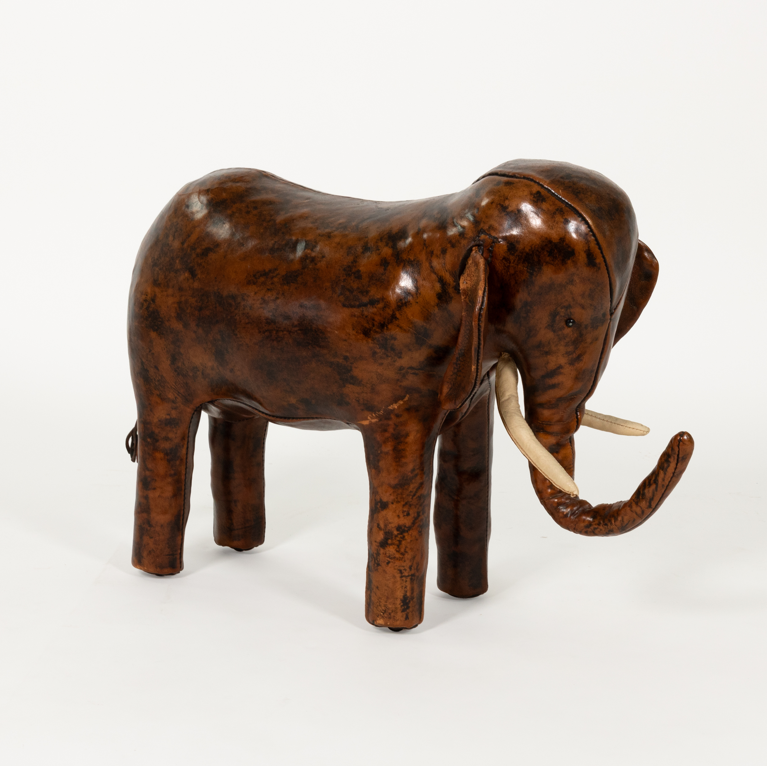 Ottoman by Dimitri Omersa for Liberty’s of London Distributed by Abercrombie & Fitch. Early example elephant in original leather. The pig was the first produced animal in the series and later followed by the leather elephant, donkey, rhinoceros; England circa 1960 1 2 3 4