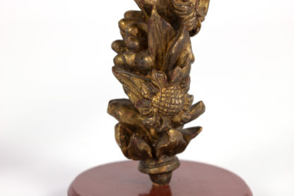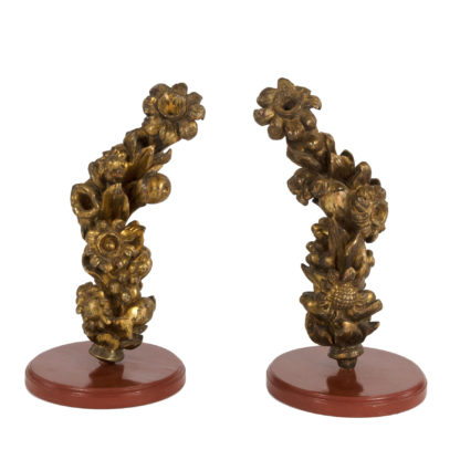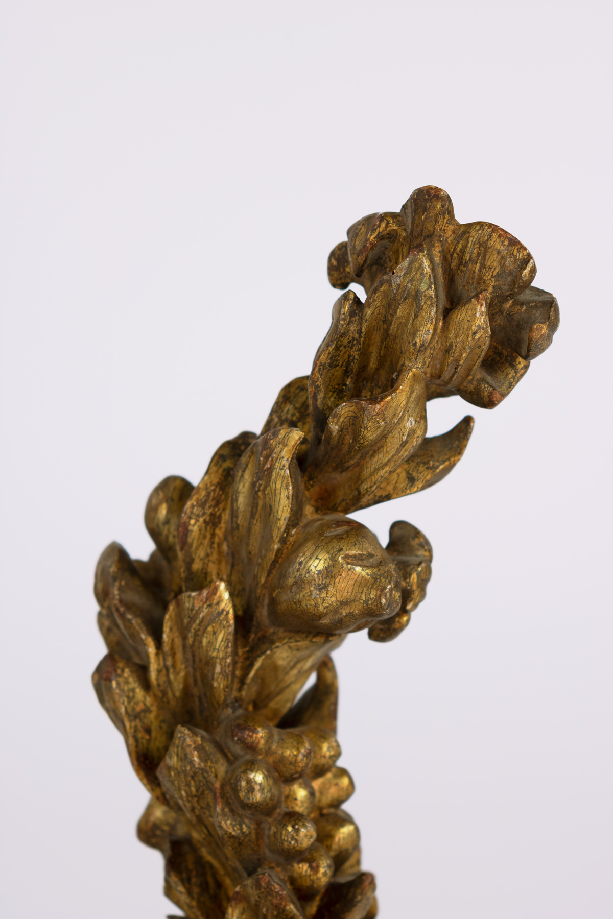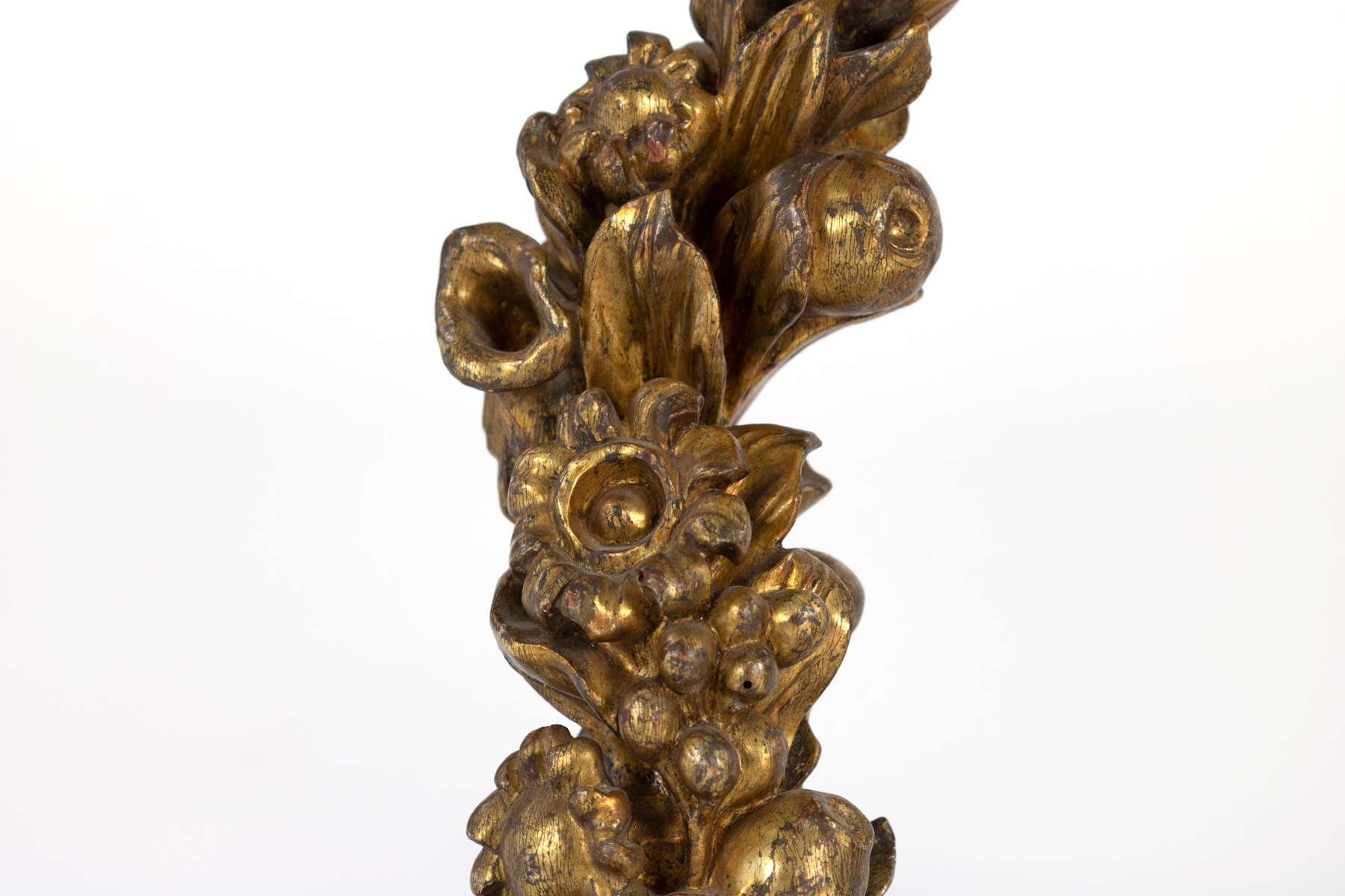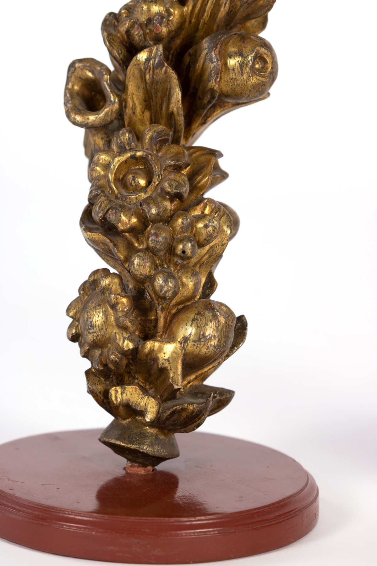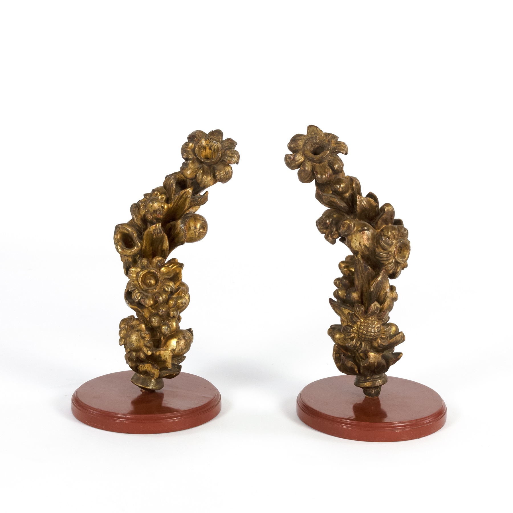 Pair of 18th century carved giltwood architectural elements depicting fruit, flowers, thistle and berries; Italian circa 1700 mounted on later stands.