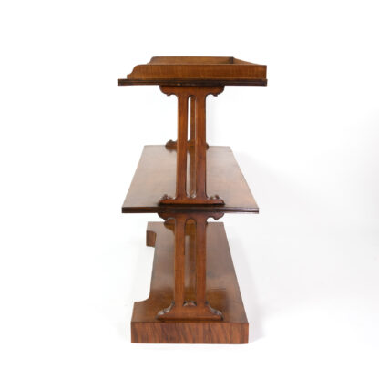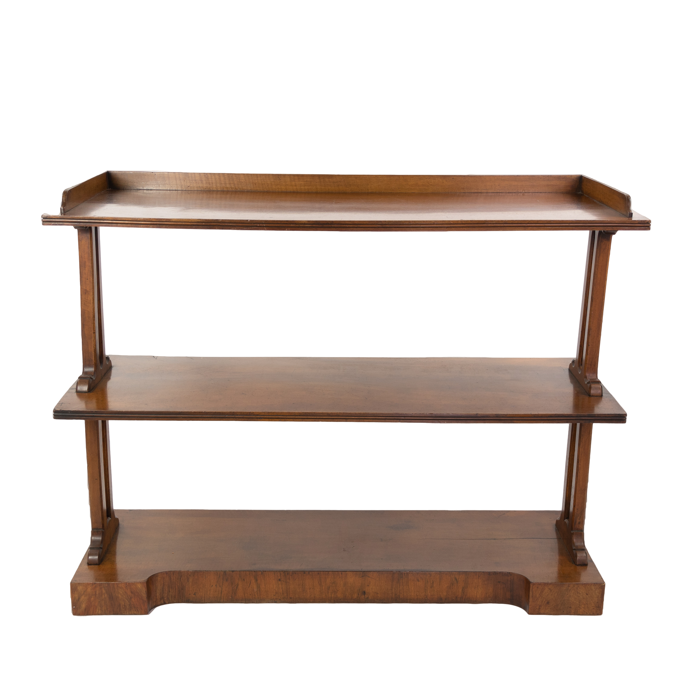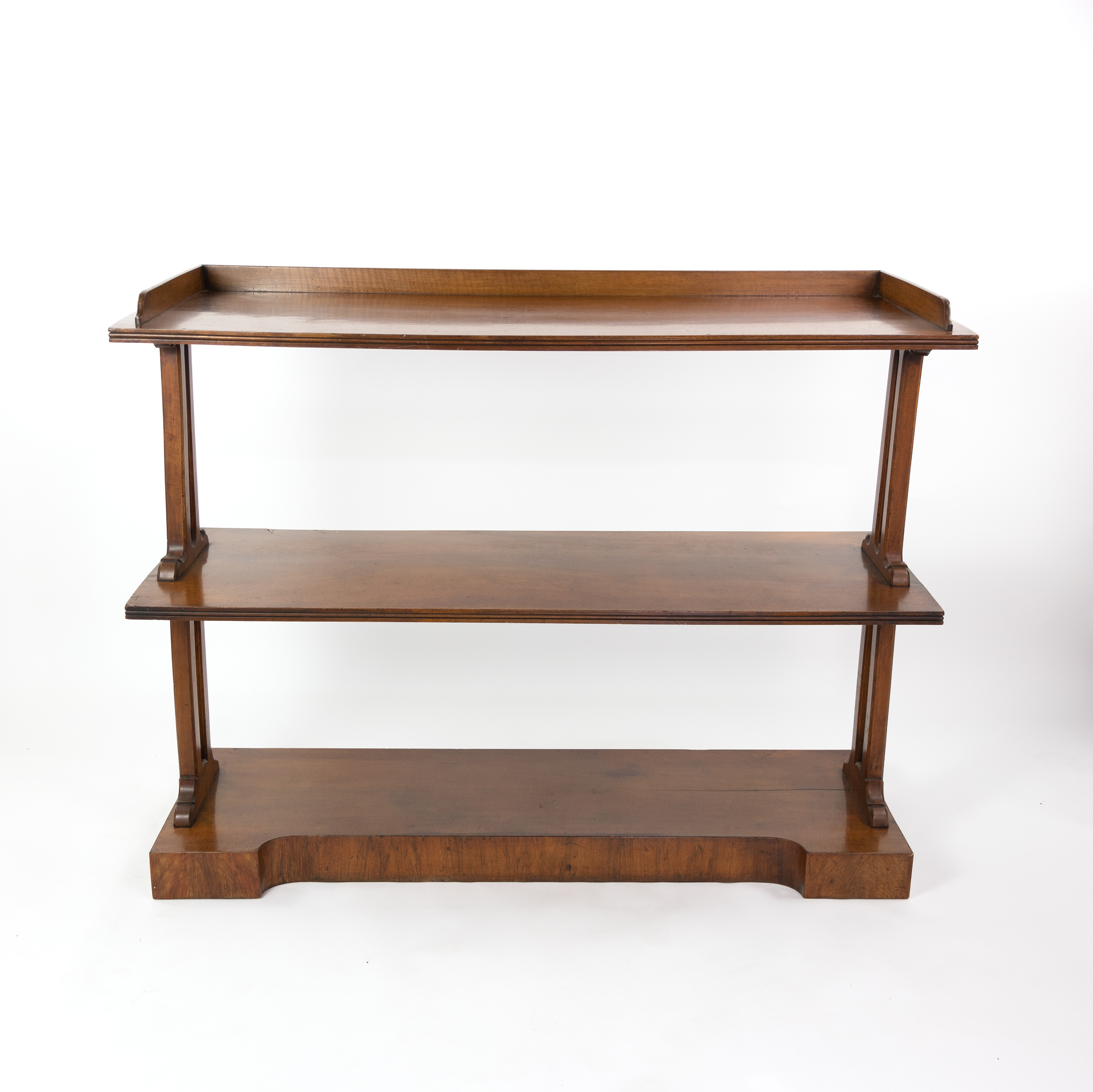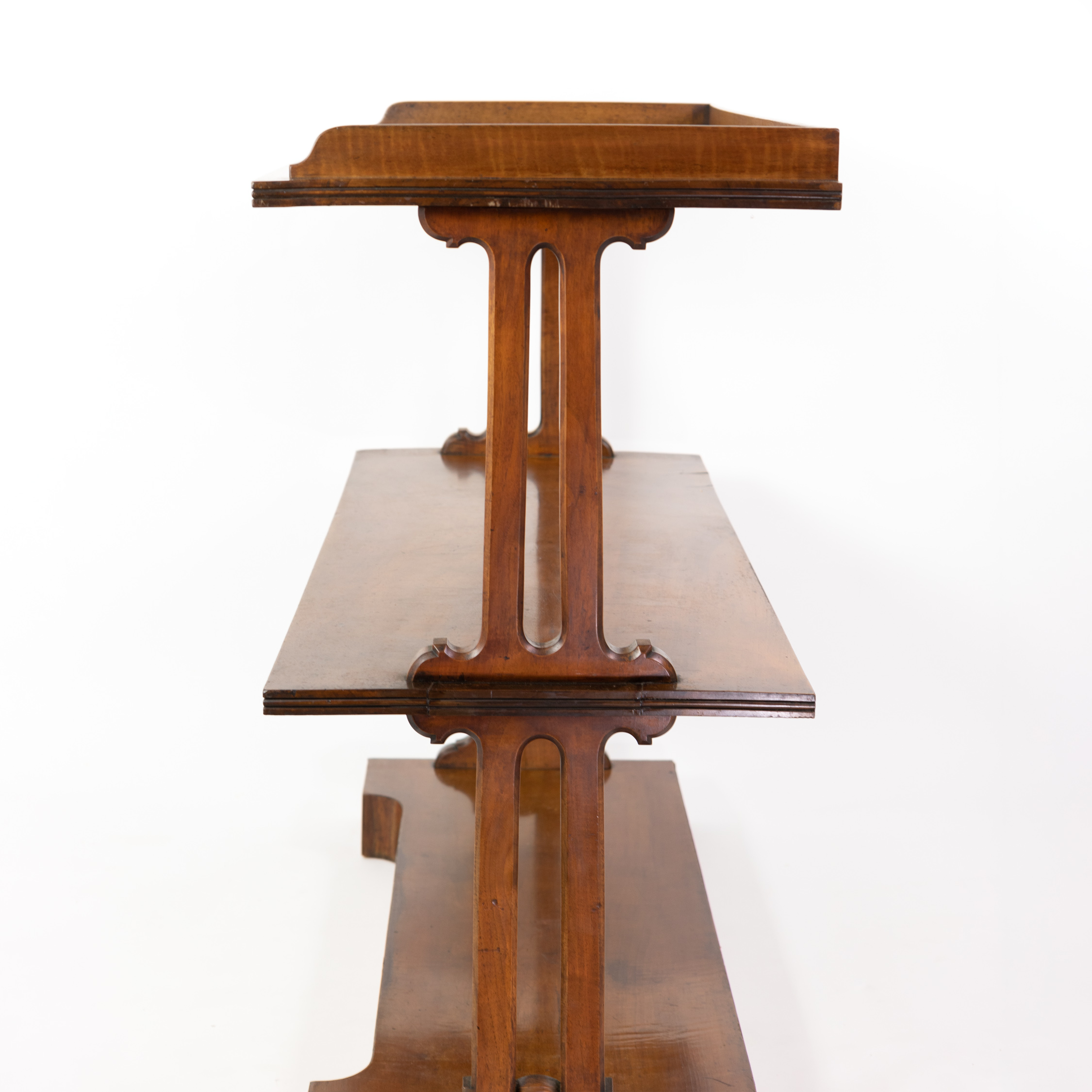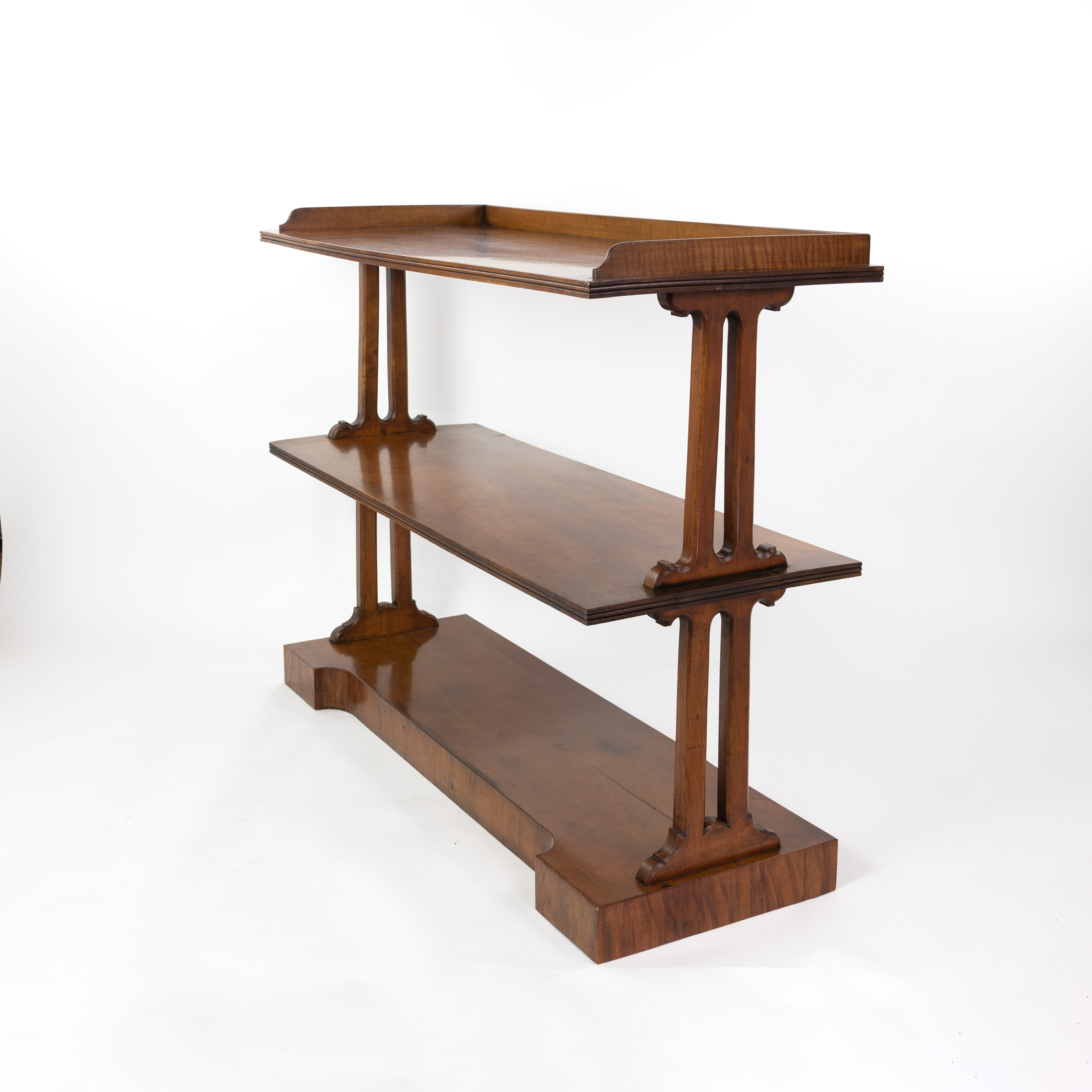 Regency Period mahogany triple tier etagere with chamfered supports and raised gallery on top shelf