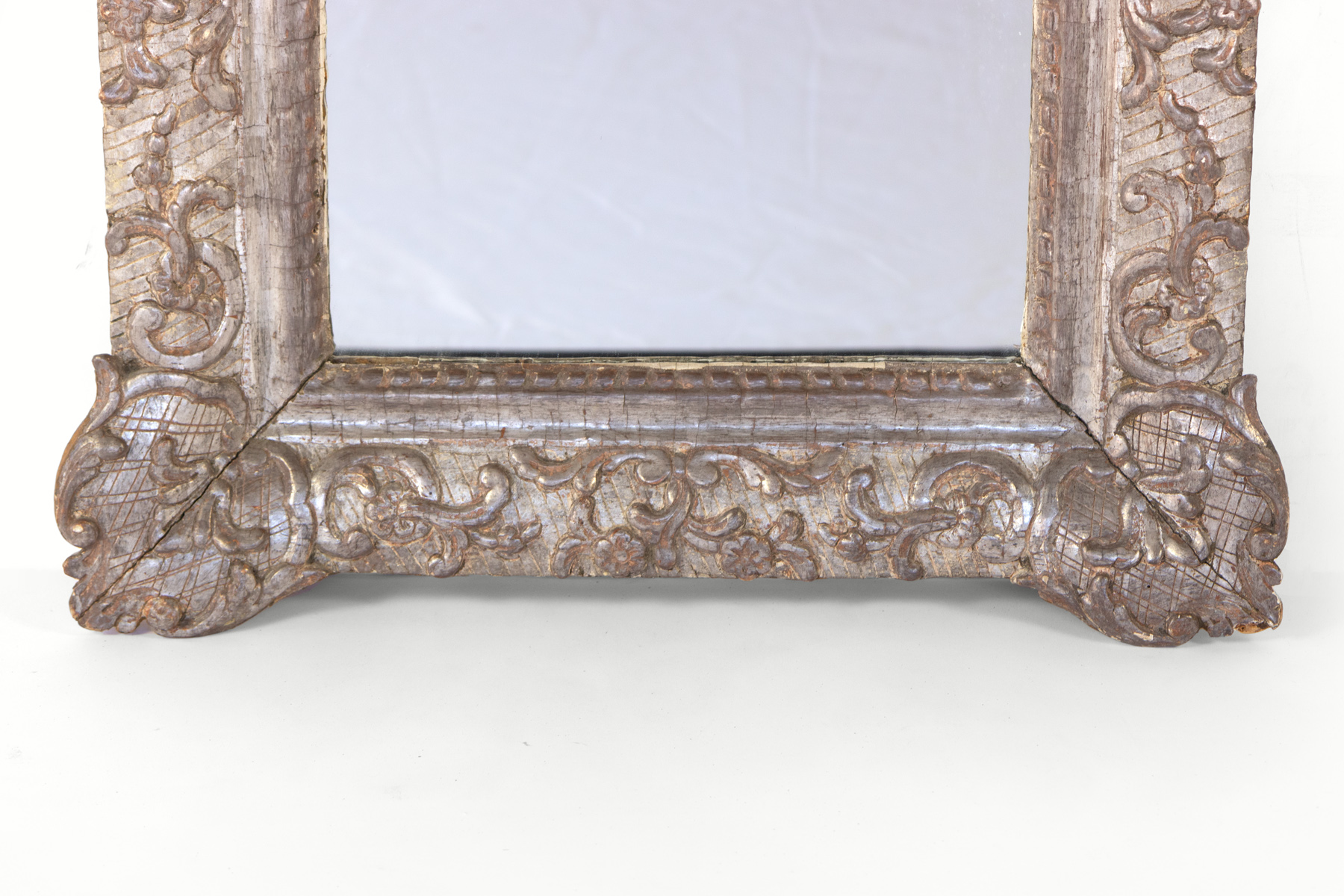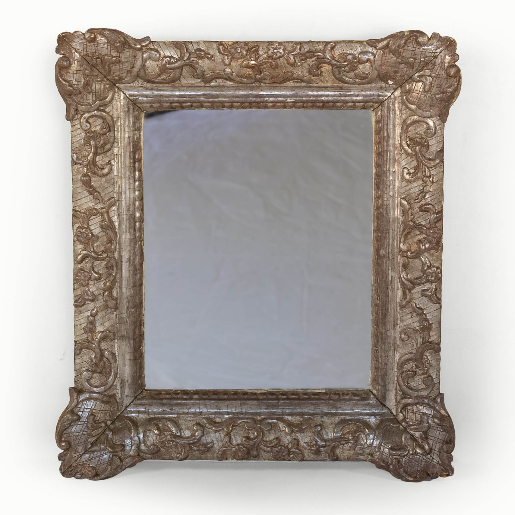 An elegant and small scale carved silver gilt mirror frame; French, circa 1870.