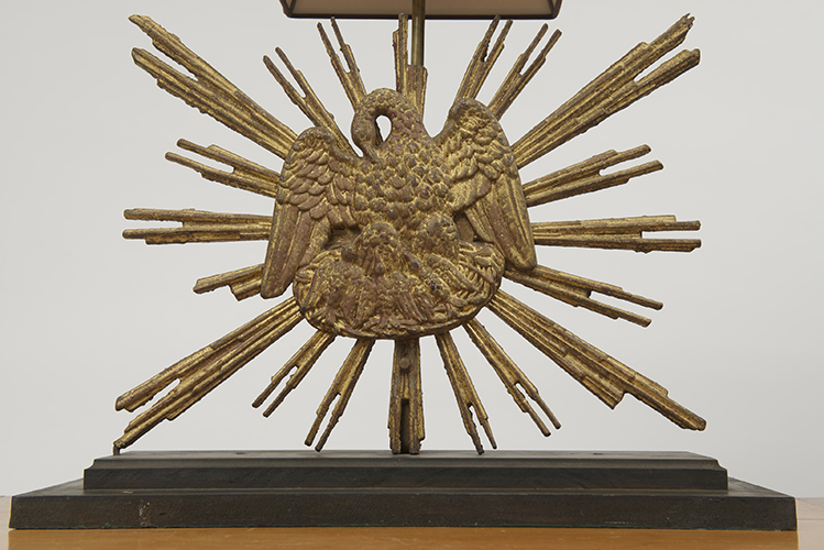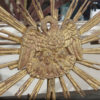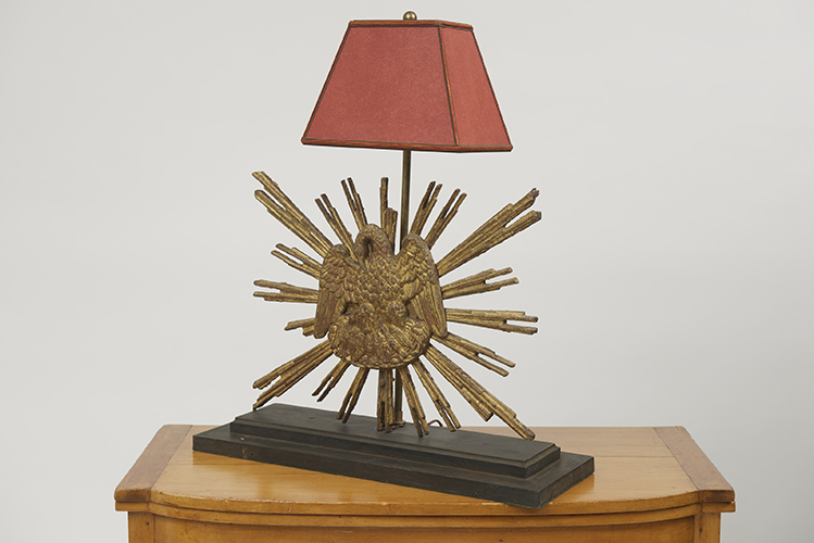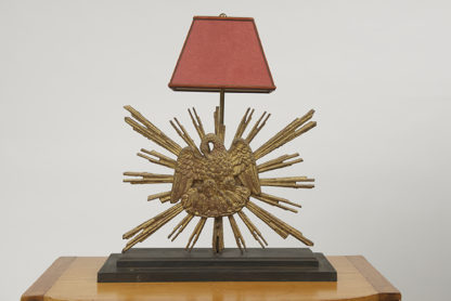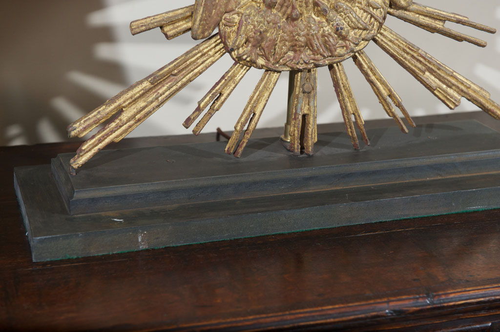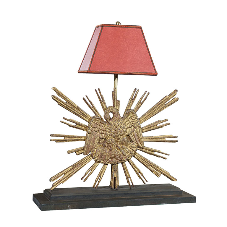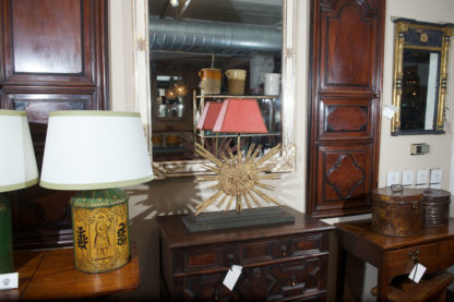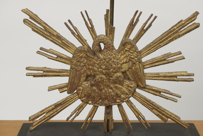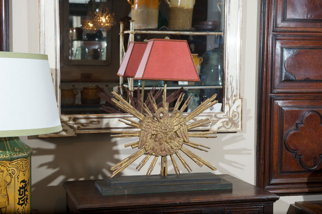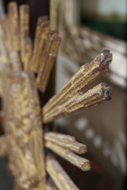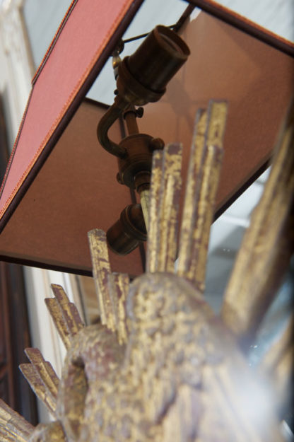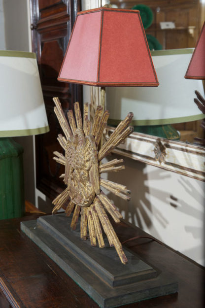 Carved giltwood sunburst mounted as a lamp; French circa 1890.