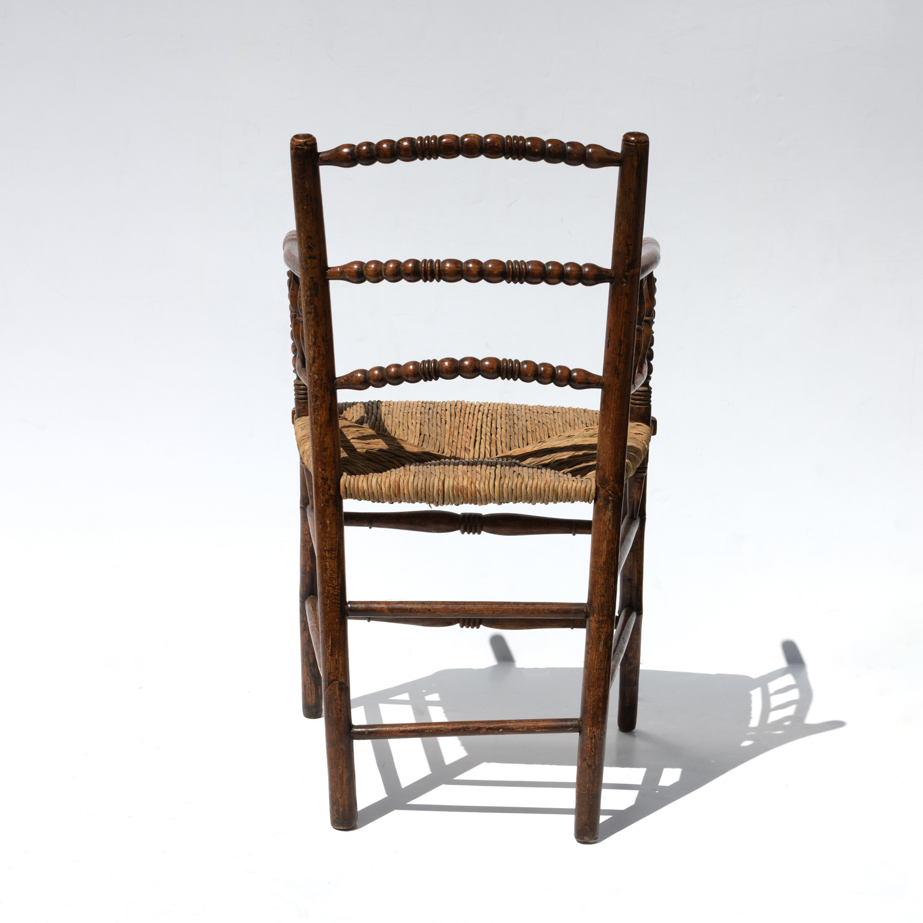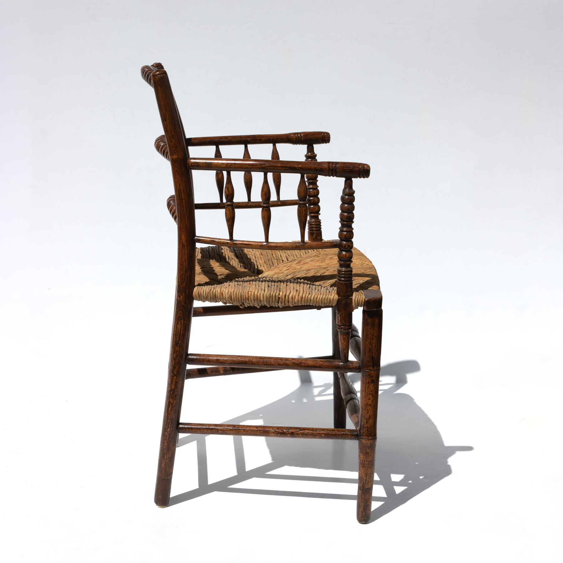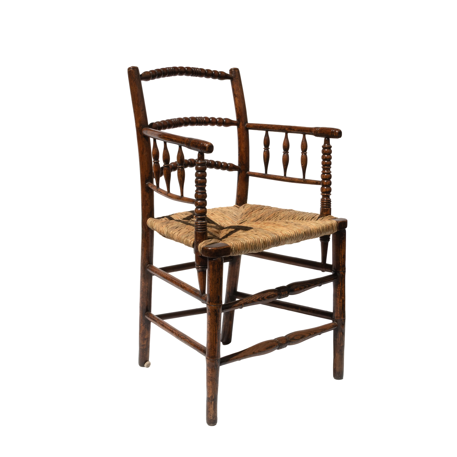 Turned side chair with woven rush seat.