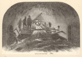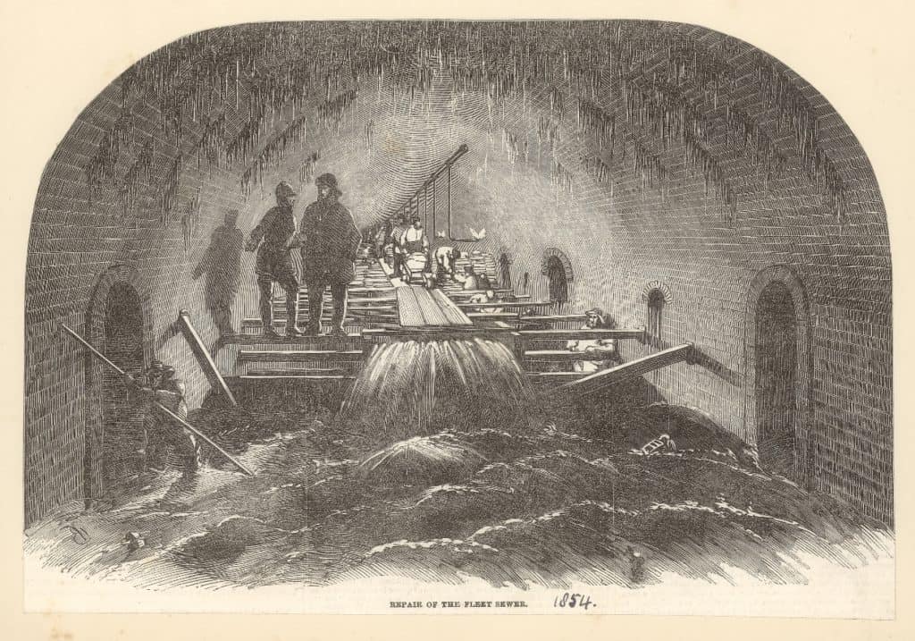 Corporation of London workmen repairing the Fleet sewer, south of Fleet street in 1854 Corporation of London workmen repairing the Fleet sewer, south of Fleet street in 1854 Post navigationPrevious post: The Heatwave of 1858: The Great Stink.